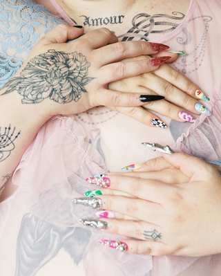 “I write on my skin, to make us both in tune. To make revolution my way. It’s my own rebellion, my armor to protect me from the too harsh outside world. I write on my body and those of my peers. To heal and be healed. It is our secret little link. Behind our shells in perpetual transformation, we create small self-sufficient shelters. They are shared cocoon spaces of care where love is to be found.”