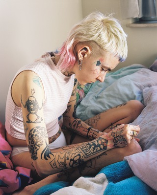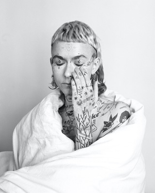 Frisson is a non-binary tattoo artist, known as Florex Forever. Not only do they create unique designs and pieces for their own body, but aspires to give strength to their community through the art of tattoos. The practice of tattooing is a form of self-directed reclamation of the human body, in a world that is not always welcoming to LGBTQIA+ communities.